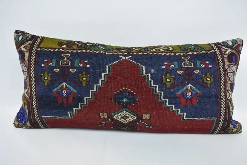 Almohada de lanzamiento rectangular roja y bronce, almohada de cáñamo y lana hecha a mano