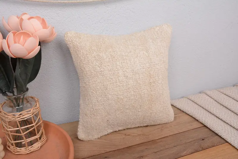 Almohada de lanzamiento bordada del suroeste beige, almohada vintage hecha a mano