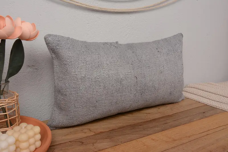 Almohada bordada del suroeste gris, almohada de tiro de lino hecha a mano
