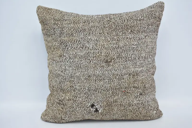 Almohada de tiro a cuadros marrón y beige, almohada de cáñamo vintage 24x24