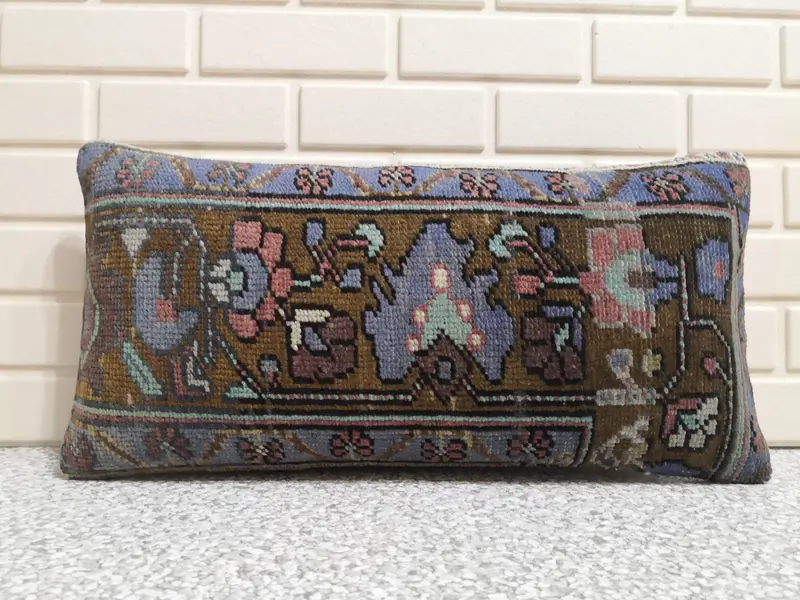 Almohada de lanzamiento de lana hecha a mano con patrón geométrico de bronce, almohada rectangular vintage
