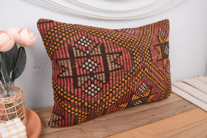 Almohada de lanzamiento bordada del suroeste rojo, cojín vintage hecho a mano