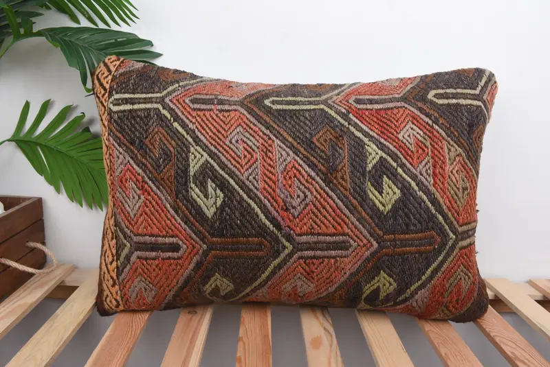 Almohada de lanzamiento del suroeste bordada marrón y roja, cojín hecho a mano