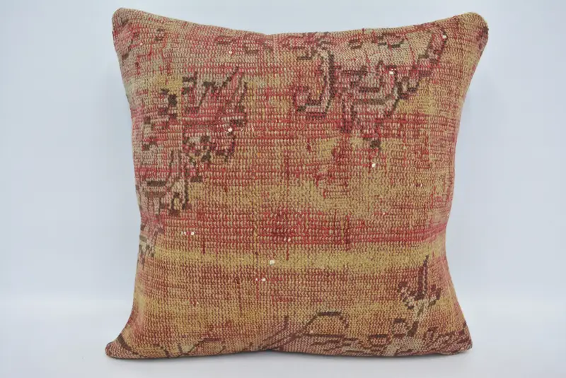 Almohada de tiro bordada roja y verde, cojín de cáñamo hecho a mano 24x24