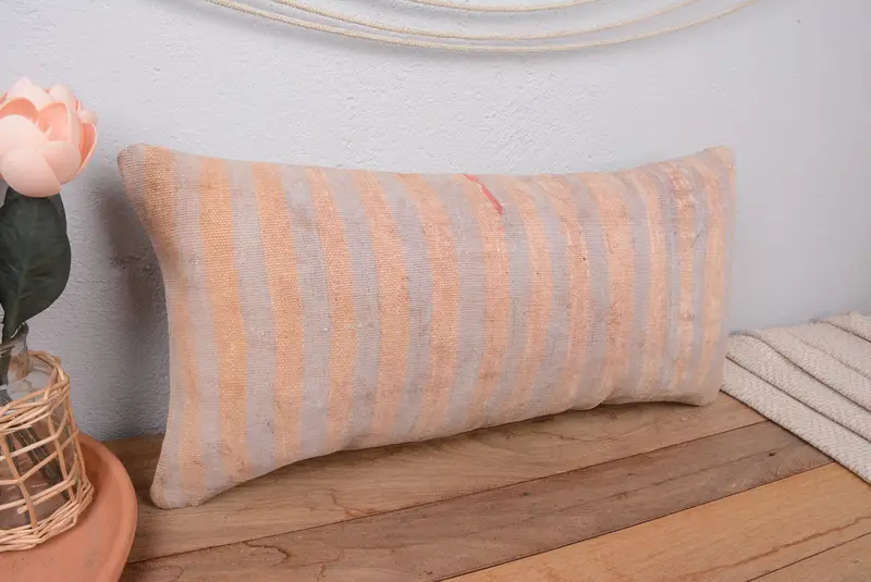 Almohada de rayas beige y bronce bordada, almohada de lanzamiento hecha a mano de 12x24