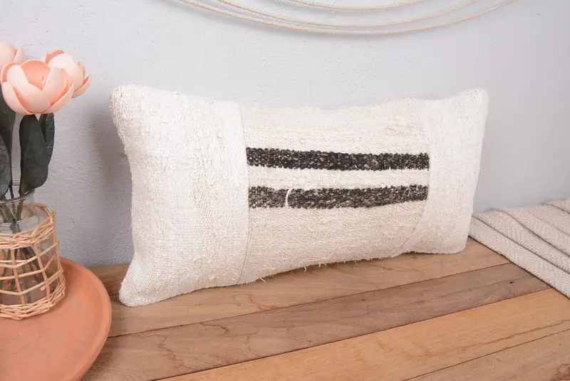 Almohada de patchwork bordada beige y marrón, almohada de lanzamiento vintage hecha a mano