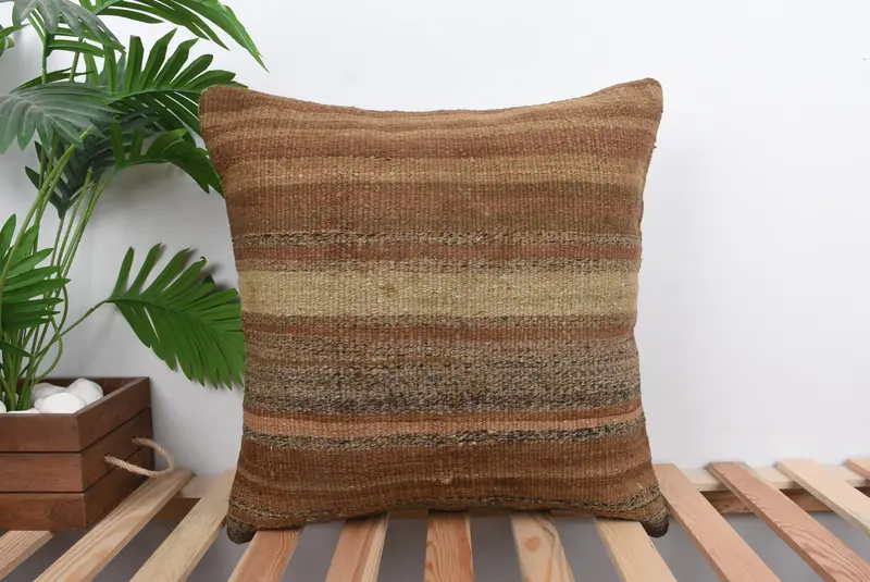 Almohada de tiro a rayas beige y marrón, cojín bordado 20x20