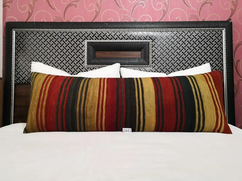 Almohada de lanzamiento de lana bordada hecha a mano, almohada rectangular a rayas vintage