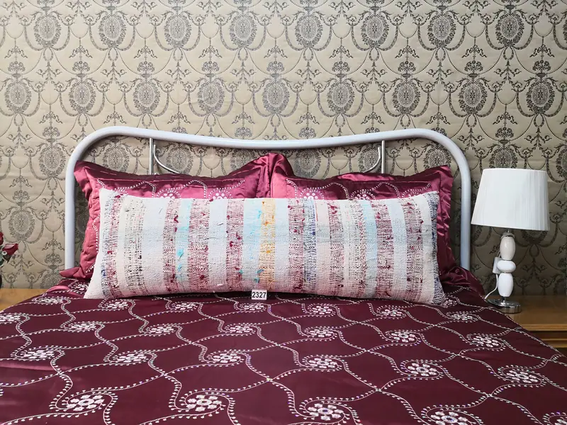 Almohada rectangular de rayas rojas y bronce, almohada de lanzamiento hecha a mano