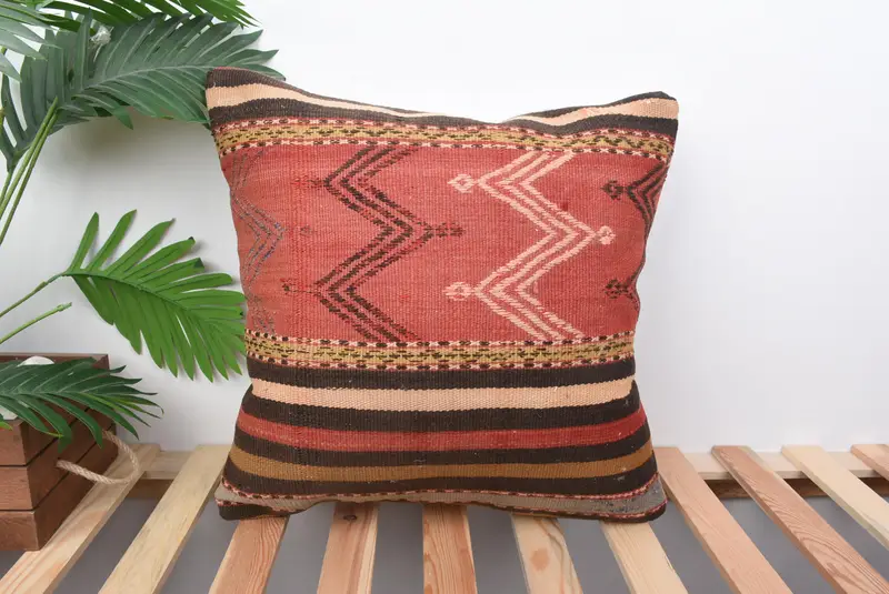 Almohada de tiro a rayas rojas y marrones, cojín bordado 18x18