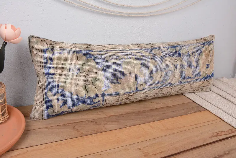 Almohada bordada del suroeste azul y beige, almohada de lanzamiento hecha a mano