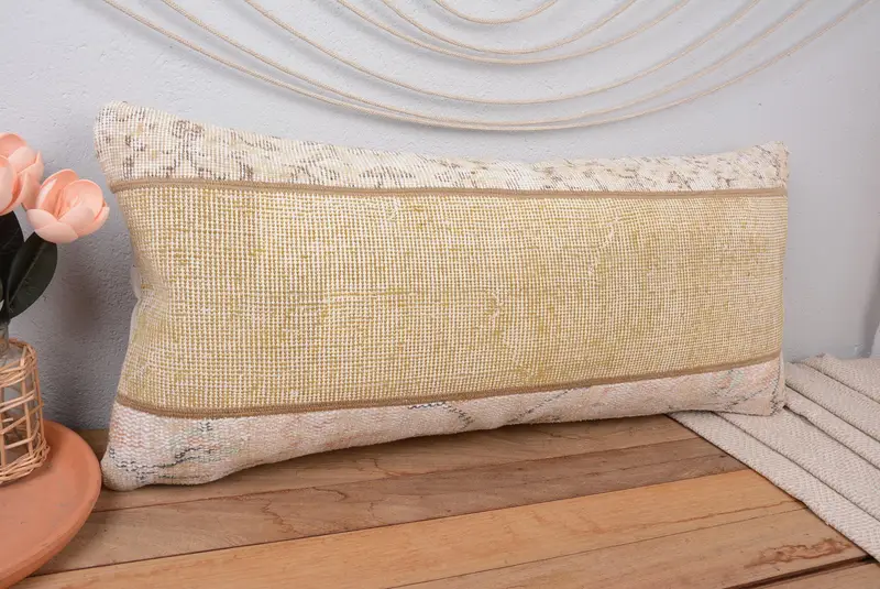 Almohada de lanzamiento de patchwork verde y beige, almohada bordada hecha a mano