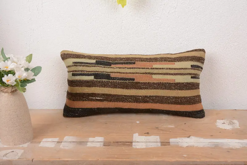 Almohada de tiro Kilim hecha a mano, cojín bordado vintage para sala de estar