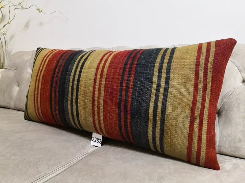Almohada de lanzamiento de lana a rayas hecha a mano, almohada decorativa rectangular vintage