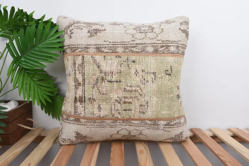 Almohada de lanzamiento de patchwork beige y marrón, cojín de lino hecho a mano de 20x20