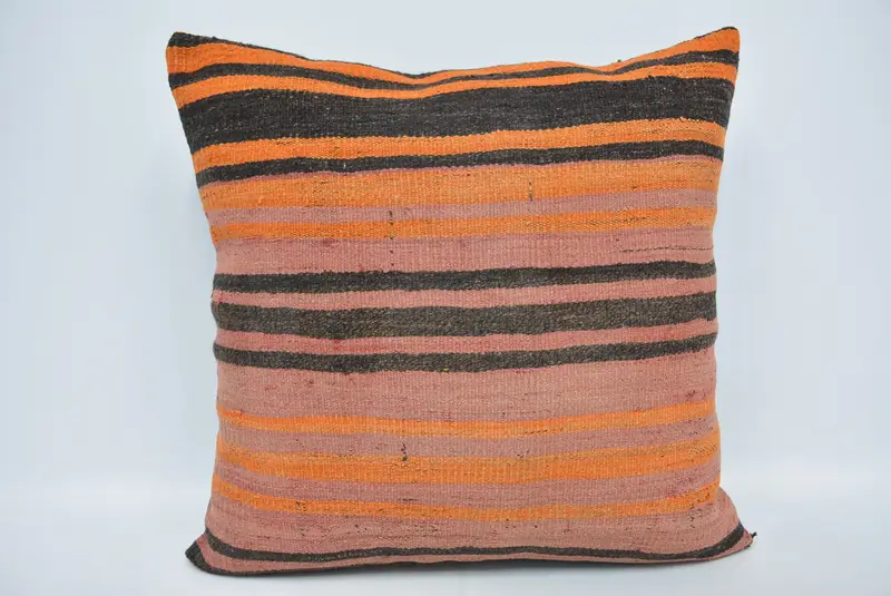 Almohada de tiro a rayas hecha a mano, cojín naranja y rosa de 32x32