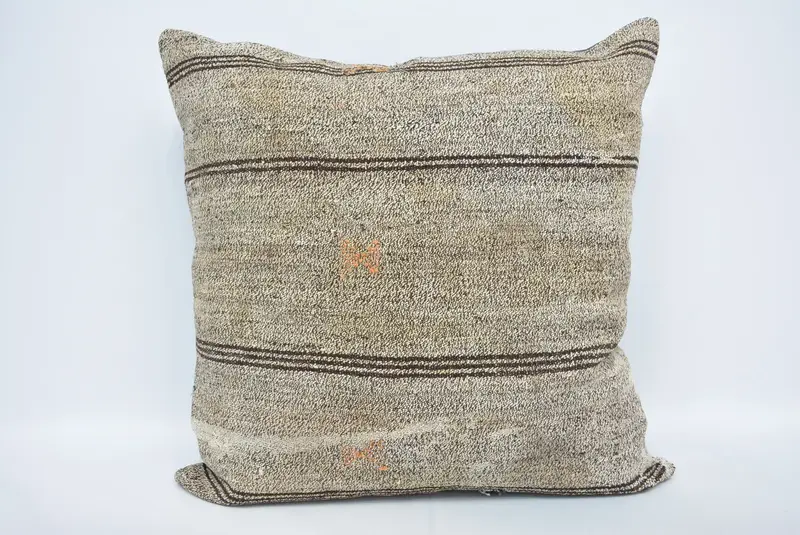 Almohada de tiro a rayas marrón y beige hecha a mano de 32x32, cojín vintage
