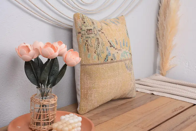Almohada de tiro de patchwork marrón y bronce hecha a mano, almohada de lino bordada vintage