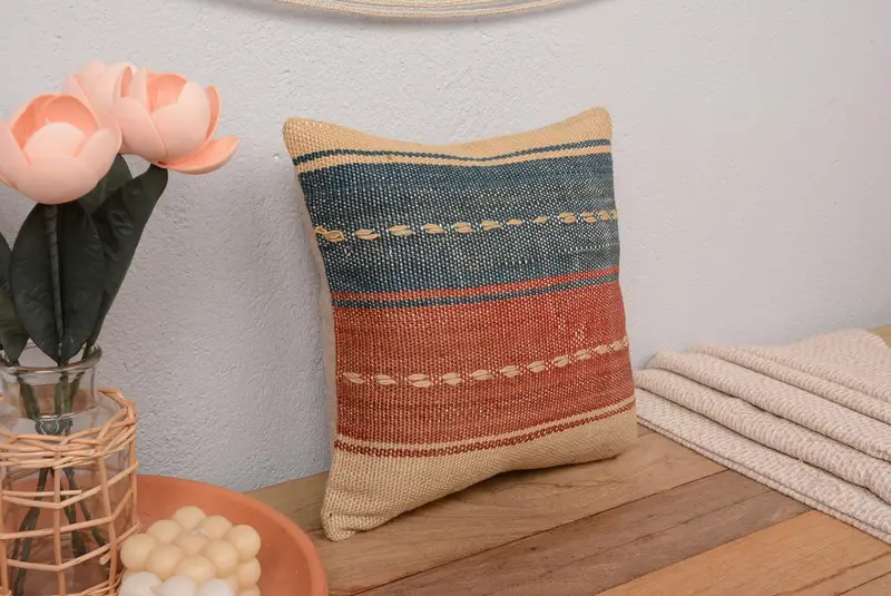 Almohada de tiro de rayas rojas y verdes, cojín bordado vintage