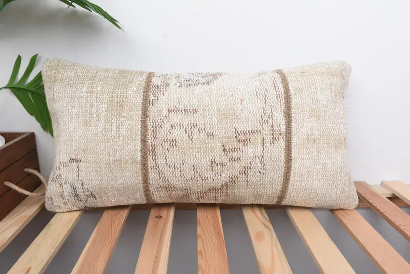 Almohada de lanzamiento de patchwork beige y marrón, cojín bordado hecho a mano