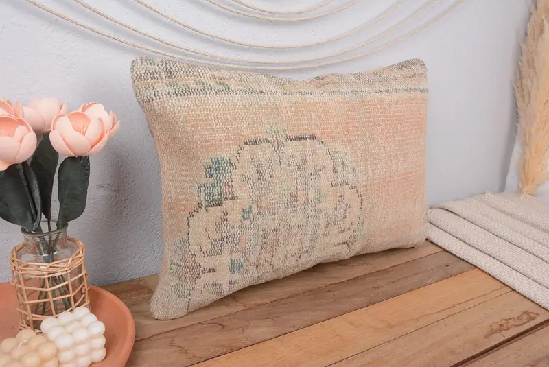 Almohada de tiro bordada del suroeste hecha a mano, almohada de lino beige y marrón