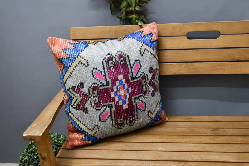 Almohada de lanzamiento Kilim rojo, cojín bordado del suroeste