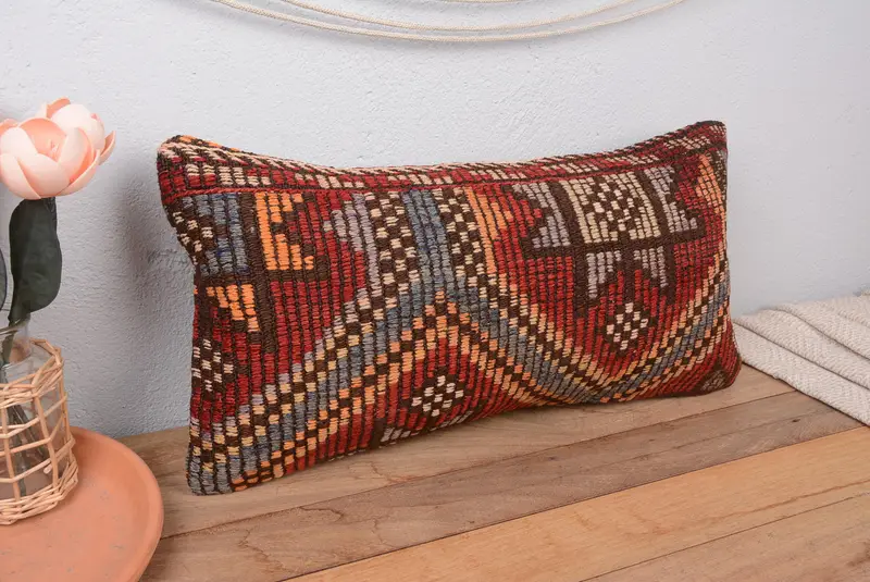 Almohada de lanzamiento bordada del suroeste rojo, cojín vintage 12x24