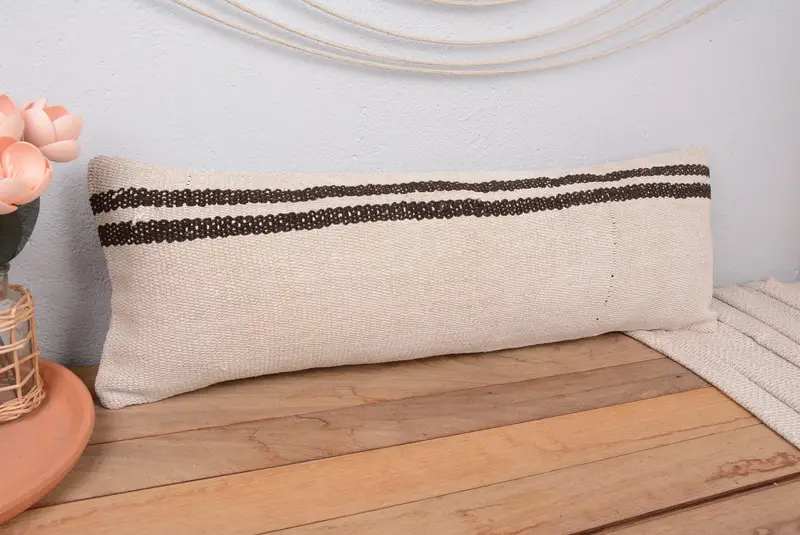 Almohada de rayas beige y marrón, almohada de tiro hecha a mano de 12x36