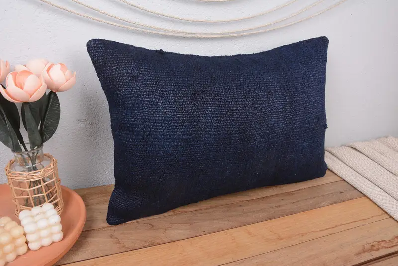 Almohada de tiro bordada del suroeste azul, almohada vintage hecha a mano
