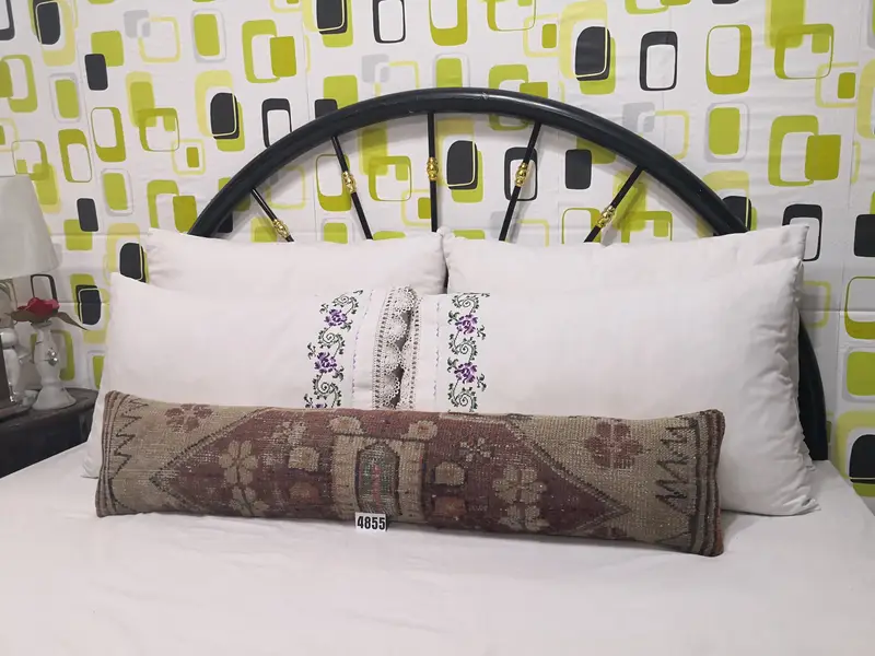Almohada de lanzamiento de lana bordada hecha a mano, almohada geométrica vintage de 8x40 pulgadas