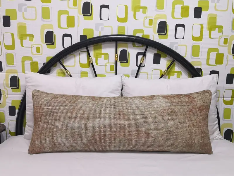 Almohada de lanzamiento de lana bordada hecha a mano, decoración vintage geométrica