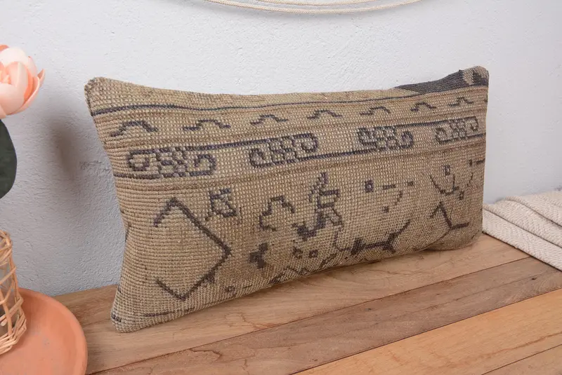 Almohada de lanzamiento beige del suroeste con acentos marrones, almohada rectangular hecha a mano