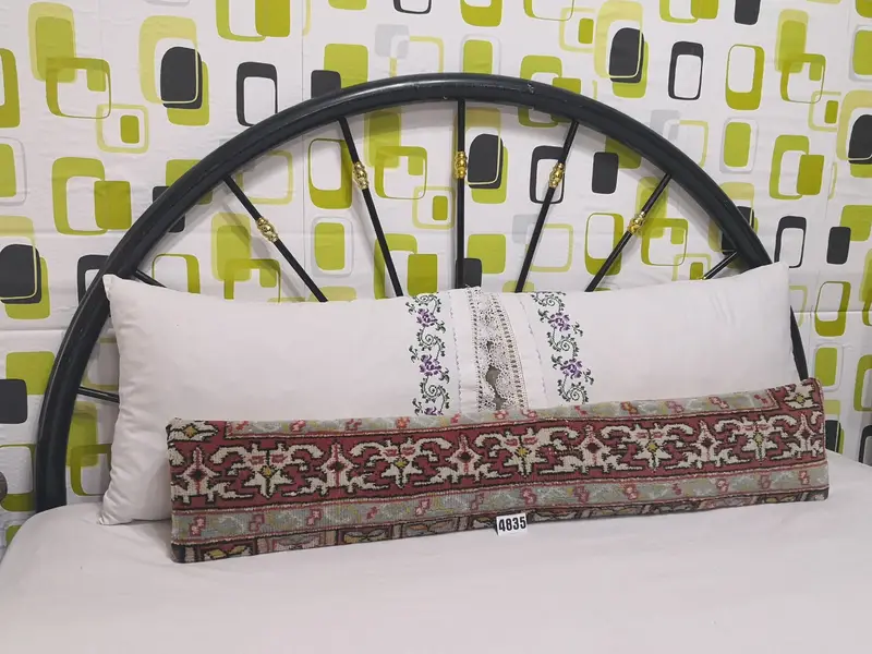 Almohada de lanzamiento de lana bordada hecha a mano, decoración vintage geométrica