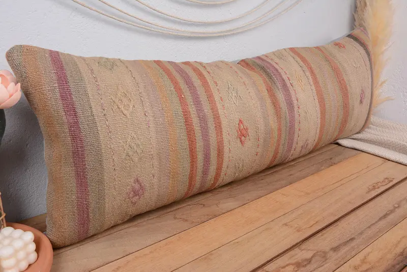 Almohada de tiro a rayas beige y púrpura, cojín bordado hecho a mano