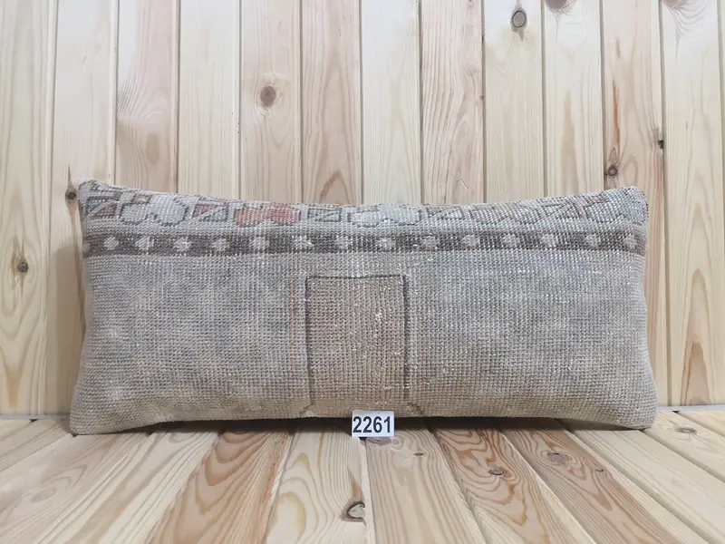 Almohada de lanzamiento de lana bordada hecha a mano, decoración vintage geométrica