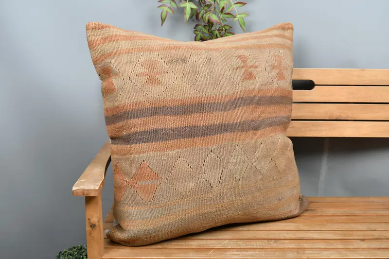 Almohada de lanzamiento geométrico beige y marrón, almohada bordada vintage