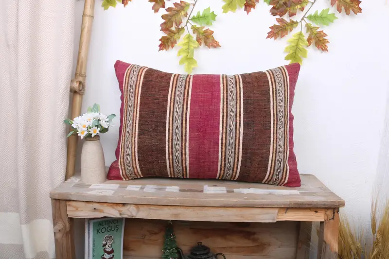 Almohada de rayas púrpura y beige, almohada de tiro bordada 16x24