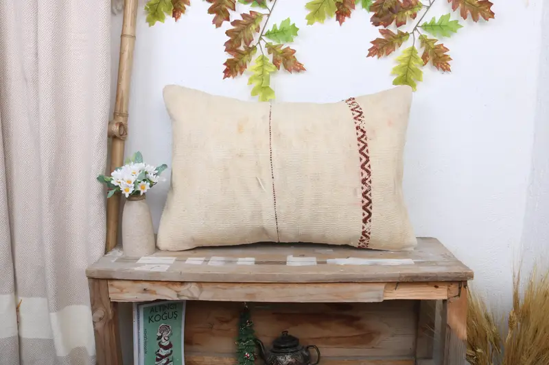 Almohada de rayas beige y marrón, almohada de lanzamiento bordada de 16x24