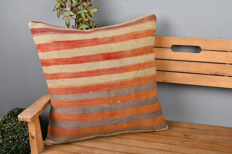 Almohada de tiro de rayas rojas con detalles en bronce, cojín bordado