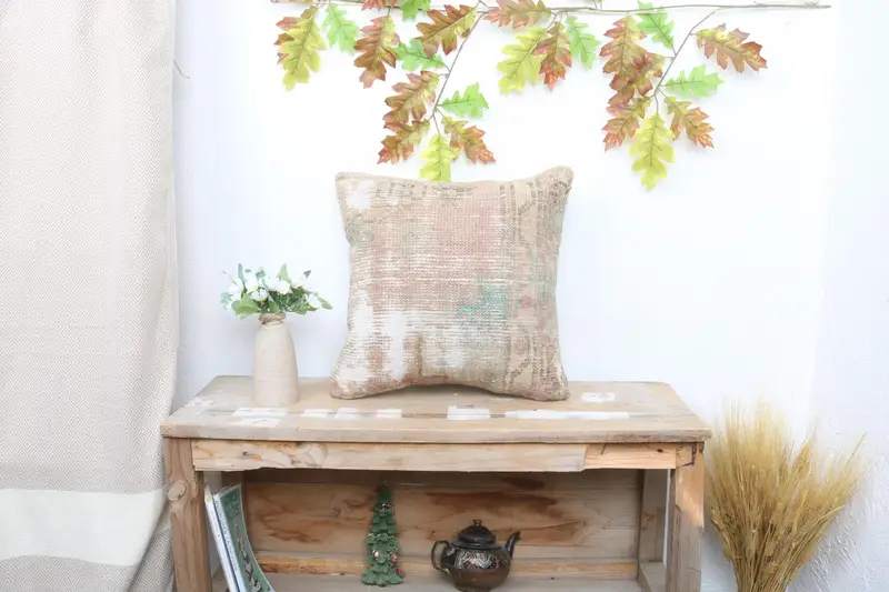 Almohada de lanzamiento bordada del suroeste beige, cojín versátil de 16x16