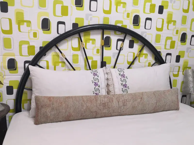 Almohada de lanzamiento rectangular bordada, almohada de lana con estampado geométrico