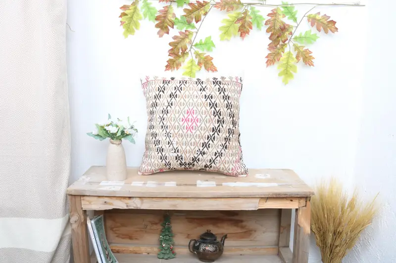 Almohada de lanzamiento bordada hecha a mano, almohada de lanzamiento de patrón geométrico