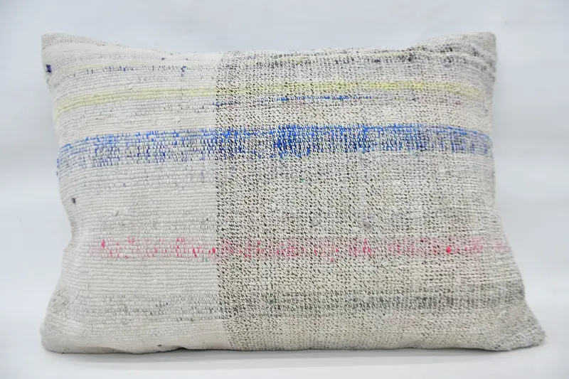 Almohada de tiro a rayas 20x28 hecha a mano, almohada vintage bordada