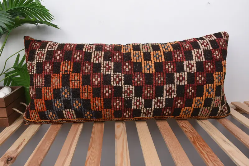 Almohada de lanzamiento bordada del suroeste rojo, cojín hecho a mano de 16x36