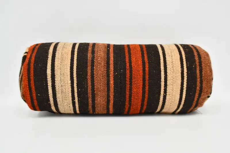 Almohada de tiro a rayas hecha a mano, cojín marrón y rojo de 8x20