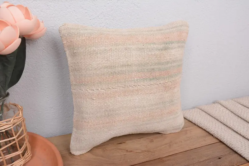 Almohada de tiro a rayas beige y bronce, cojín bordado hecho a mano