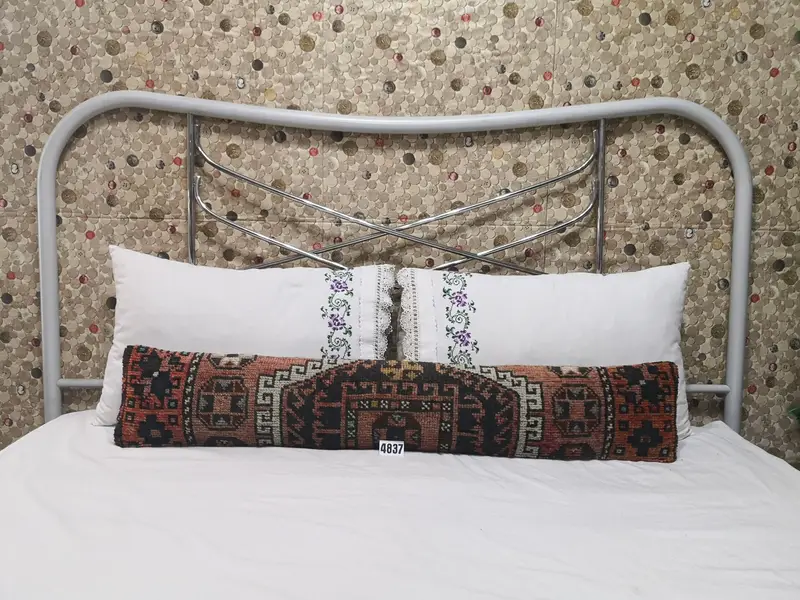 Almohada de tiro geométrico marrón y gris bordado, almohada de lana hecha a mano