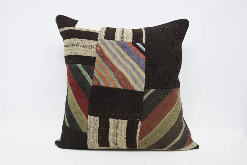 Cáñamo hecho a mano y lana 32x32 almohada de lanzamiento marrón y verde, almohada a rayas