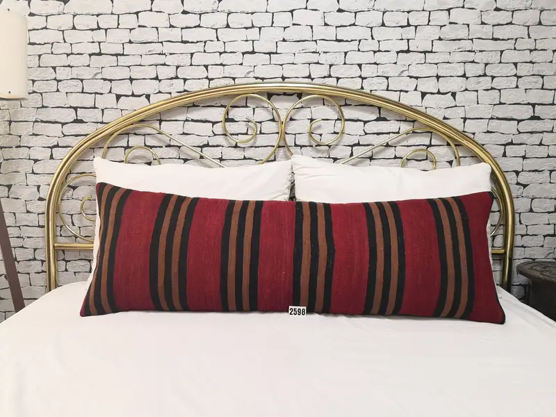 Almohada de lanzamiento de lana a rayas hecha a mano, almohada decorativa rectangular de 16x48 pulgadas