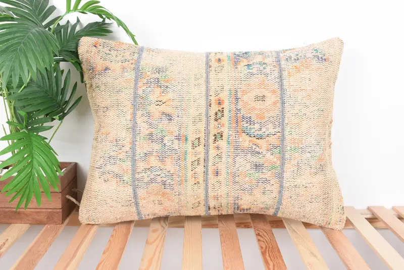 Almohada de tiro patchwork azul y naranja, cojín hecho a mano de 20x28